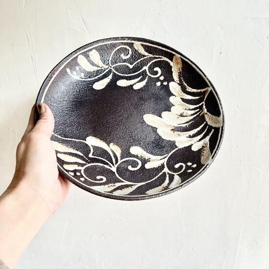 やちむん 眞正陶房 7寸皿(マンガン唐草)