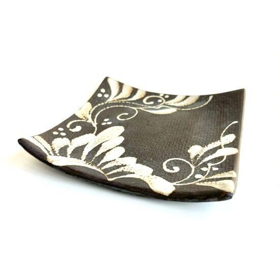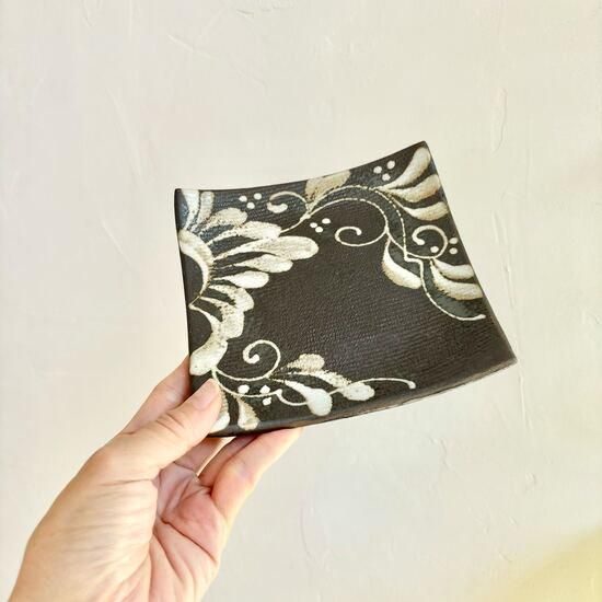 やちむん 眞正陶房 5寸正方皿(マンガン唐草)