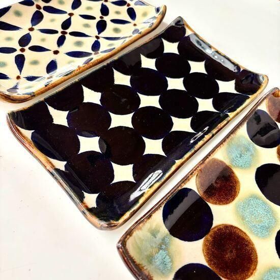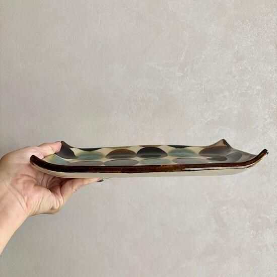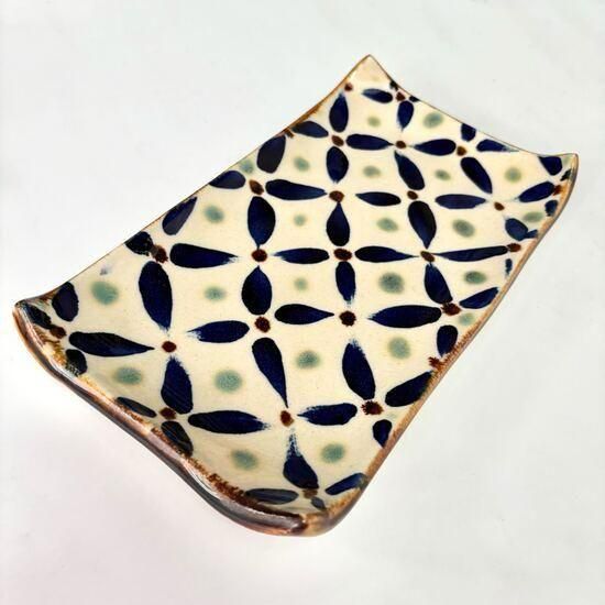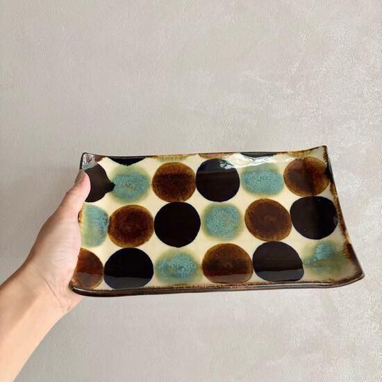 レトロ可愛い手書きの絵付けが魅力の角皿。